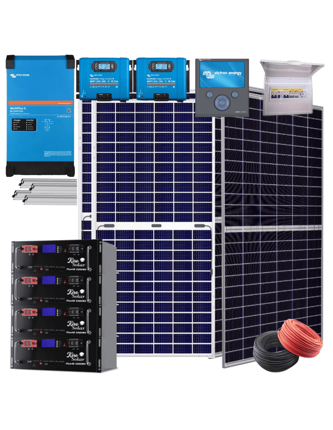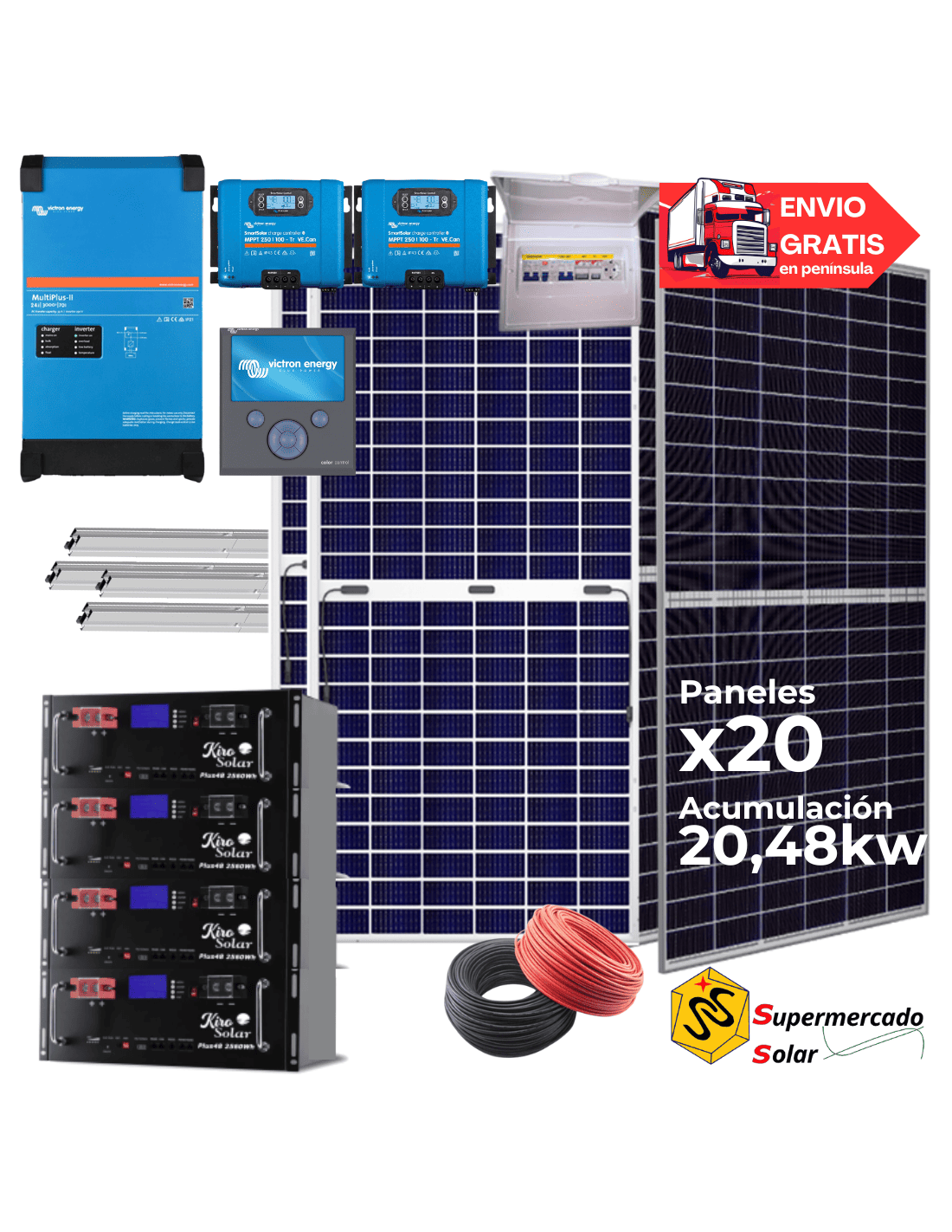 Kit solar de alta calidad con baterías de Litio para iluminación LED, Televisión LED, Nevera A++, Microondas, Horno, Vitrocerámica, Aire Acondicionado, Termo, Bomba y otros consumos. Este kit se puede modificar según sus necesidades.