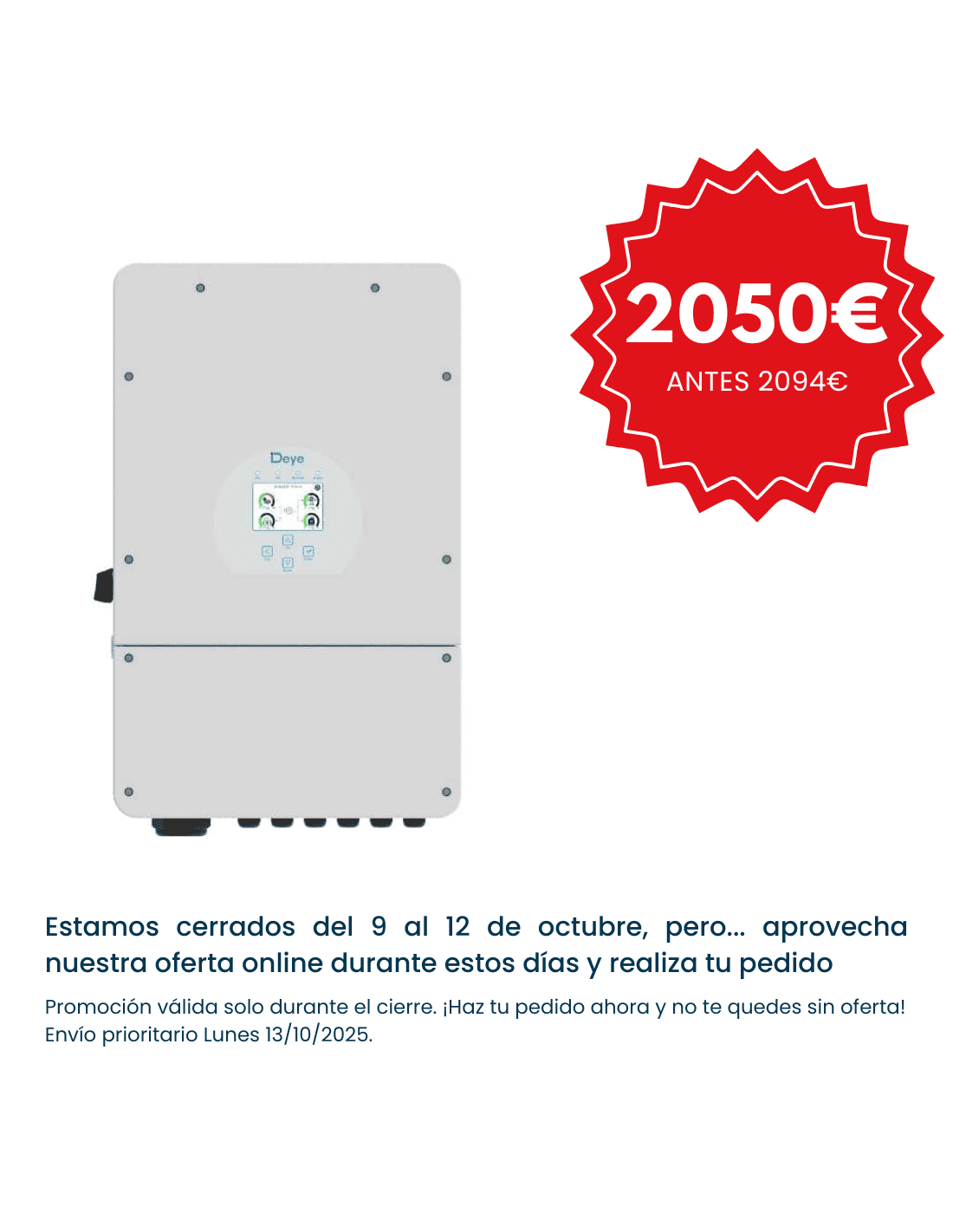 El inversor híbrido Deye Sun 10kW SG02LP1 es una solución monofásica de alto rendimiento diseñada para instalaciones solares con altos requerimientos de potencia y autonomía. Con una potencia nominal de 10.000 W y capacidad de gestión energética con baterías de litio, este inversor híbrido permite optimizar el autoconsumo, almacenar excedentes solares y asegurar un suministro estable incluso durante cortes eléctricos. Es compatible con baterías como Pylontech, BYD o KiroSolar Plus, lo que permite una integración flexible en sistemas nuevos o ampliaciones. Su tecnología de control inteligente permite priorizar el uso de energía solar, programar horarios de carga y descarga y monitorizar el rendimiento en tiempo real. Ideal para viviendas con alto consumo, casas rurales, negocios o instalaciones aisladas que buscan eficiencia, independencia energética y fiabilidad en el sistema. El Deye 10kW SG02LP1 es uno de los inversores híbridos más completos del mercado para instalaciones solares exigentes.