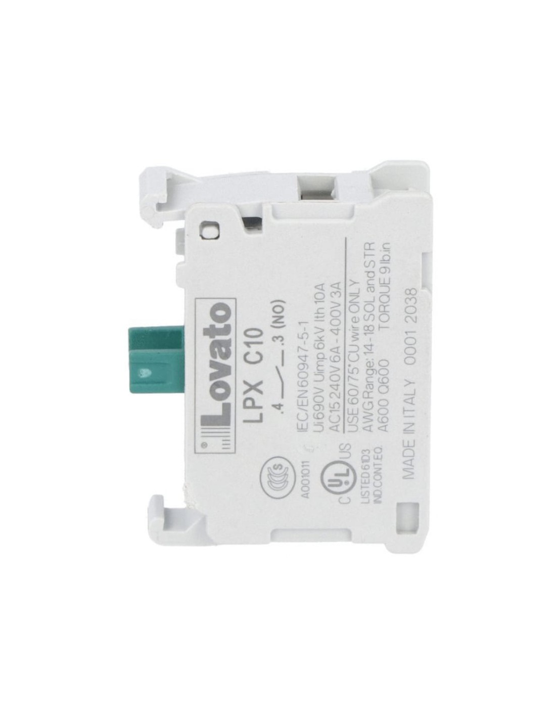 El contacto auxiliar Lovato LPXC10 tiene las siguientes características: