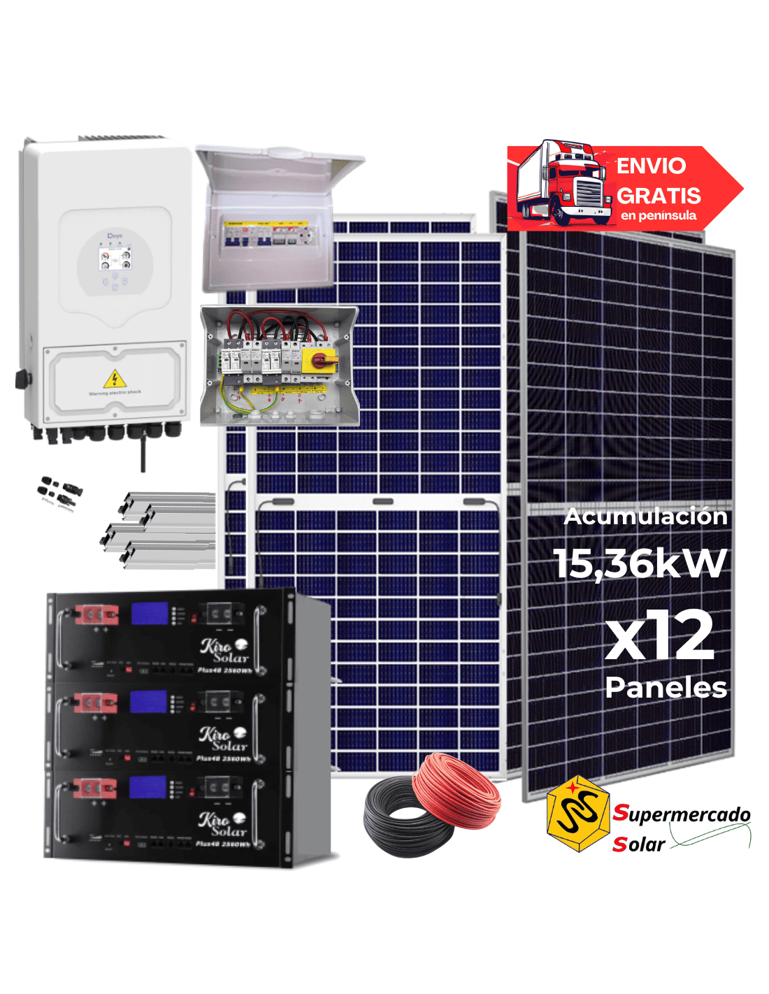 Kit solar Deye 8kW con baterías de Litio 25620W/40260W 48V