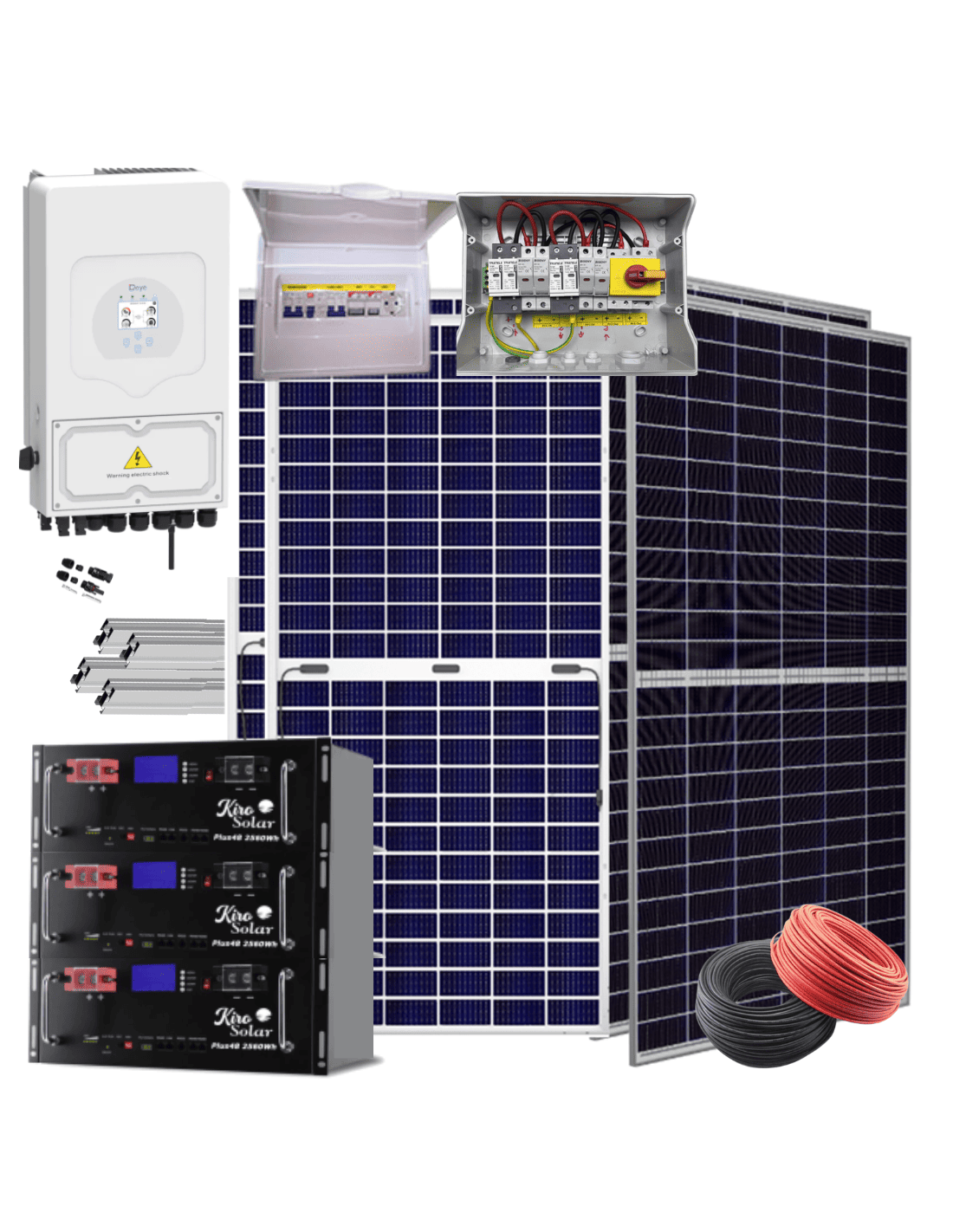 El Kit Solar Híbrido Deye 8 kW con baterías de litio KiroSolar Plus 48 V es una solución completa, versátil y de alta calidad, diseñada para cubrir las necesidades tanto de instalaciones de autoconsumo conectadas a la red como de sistemas aislados sin conexión eléctrica.